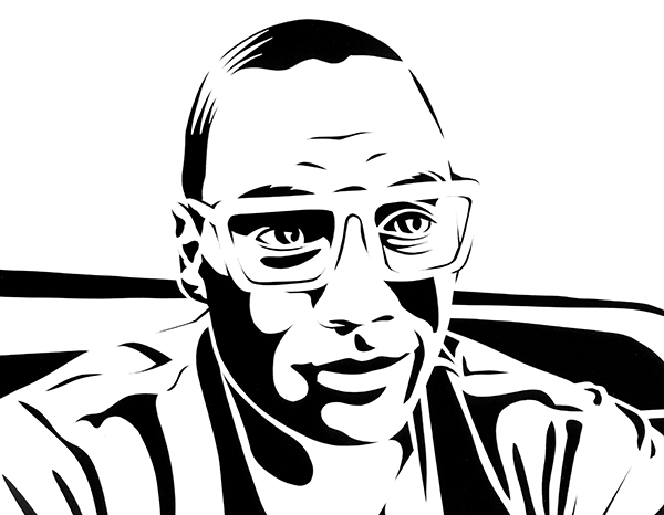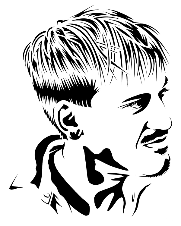 Karl plops into a black leather barber’s chair at Blades in West Hollywood sporting a complimentary smock and overgrown, unkempt head of hair. Karl: So what inspires these paintings? Where does the industrialism come from? …